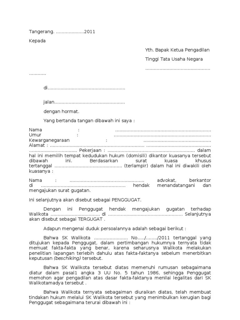 Dengan demikian isinya menjelaskan secara terperinci tindakan apa saja yang bisa dilakukan penerima kuasa terkait dengan penunjukannya tersebut. Dengan membaca artikel ini kamu akan bisa membuat surat kuasamu sendiri untuk berbagai keperluan. Untuk mewakili pemberi kuasa sepenuhnya sebagai penggugat dalam perkara perdata perbuatan melawan hukum melawan pt. N a m a :h. Setelah saya menjelaskan dari surat kuasa khusus, di artikel ini saya juga akan memberikan beberapa penjelasan ringkas yang mudah dipahami dan beberapa contoh surat kuasa khusus yang perlu anda semua ketahui. Buat siapapun yg lagi bingung bikin tugas gugatan ptun, berikut ini saya beri salah satu contoh variasi surat gugatan dari tugas hukum acara ptun yg sudah saya kumpulkan beberapa minggu yg lalu. Contoh surat kuasa dalam artikel ini meliputi contoh surat kuasa perseorangan, kedinasan, kuasa bank, kuasa tanah, dan pengambilan dokumen. Dalam hal pelimpahan wewenang dimaksud, maka pemberi wewenang harus memberikan surat kuasa. Surat tersebut berguna untuk membuktikan jika penerima kuasa berhak untuk mengatasnamakan pemberi. Untuk selanjutnya di sebut pemberi kuasa. Bagaimana cara membuat surat kuasa? Surat kuasa kedinasan adalah surat kuasa yang dibuat oleh suatu perusahaan atau instansi (baik pimpinan maupun pejabatnya) yang diberikan kepada bawahannya untuk melakukan pekerjaan yang berhubungan dengan perusahaan atau instansi tersebut. Documents similar to contoh surat kuasa penggugat dalam ptun.