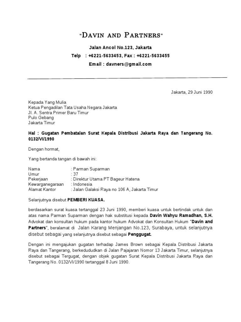 Contoh Contoh Surat Kuasa from imgv2-2-f.scribdassets.com Penggugat telah bekerja sebagai pns di kantor departemen pertanian selama kurang lebih 2 (dua) tahun lamanya.tanpa pemberitahuan terlebih dahulu pada tanggal 10 maret 2010 penggugat menerima surat keputusan nomor : Contoh surat kuasa pengambilan ijazah. Namun, kadang si pemilik bisa saja tidak bisa mengambil langsung hal itu, karena berbagai uzur atau halangan, atau. Surat kuasa kedinasan adalah surat kuasa yang dibuat oleh suatu perusahaan atau instansi (baik pimpinan maupun pejabatnya) yang diberikan kepada bawahannya untuk melakukan pekerjaan yang berhubungan dengan perusahaan atau instansi tersebut. Documents similar to contoh surat kuasa penggugat dalam ptun. Contoh gugatan badan hukum perdata. Dengan demikian isinya menjelaskan secara terperinci tindakan apa saja yang bisa dilakukan penerima kuasa terkait dengan penunjukannya tersebut. Saya yang bertanda tangan di bawah ini sebagai pihak pertama selaku penggugat di pengadilan negeri denpasar.